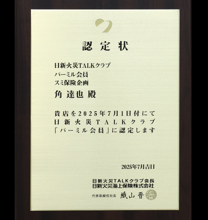 日新火災【TALKクラブ パーミル会員】認定